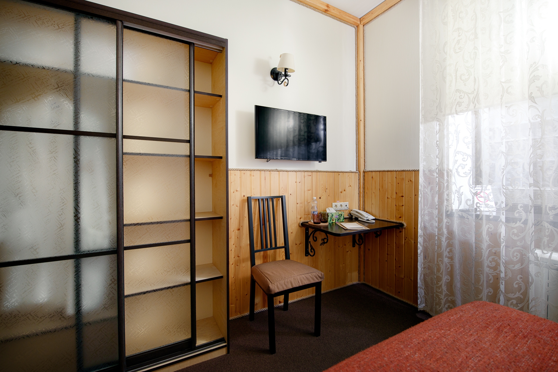 Уютный номер для размещения одного или двух человек. В номере большая двуспальная кровать, телефон, телевизор с плоским экраном, шкаф, чайник (по запросу), бутилированная вода. В ванной комнате: душевая кабина, фен, мыло, шампунь, комплект полотенец. Все номера оборудованы кондиционерами. В каждом номере нашего отеля работает бесплатный Wi-Fi. На этаже есть кулер.